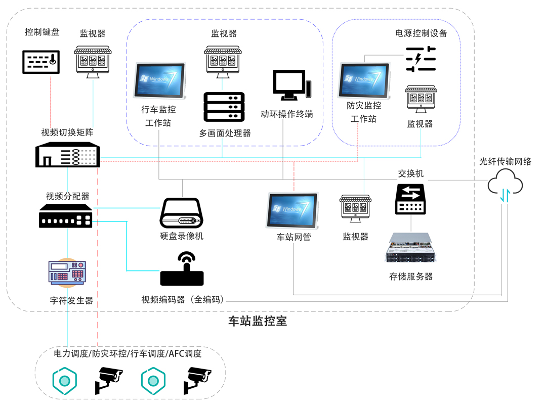 CCTV閉路電視監(jiān)控系統(tǒng)由安防網(wǎng)絡(luò)子系統(tǒng)、安防集成管理子系統(tǒng)、綜合電視監(jiān)控子系統(tǒng)、門禁子系統(tǒng)、車輛段/停車場和高架區(qū)間入侵探測子系統(tǒng)、以及車站緊急告警子系統(tǒng)等構(gòu)成。實(shí)現(xiàn)對重點(diǎn)區(qū)域的出入管理、登記、實(shí)時(shí)視頻監(jiān)控和入侵探測等功能。