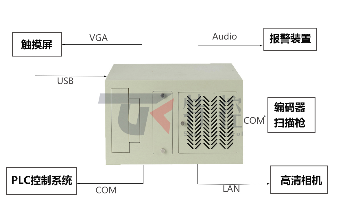視覺系統(tǒng)包含鏡頭、CCD照相機(jī)、圖像處理單元(或圖像采集卡)、圖像處理軟件、監(jiān)視器、通訊/輸入輸出單元等。工控機(jī)連接USB、觸摸屏;PLC、編碼器、掃描槍等串口設(shè)備;并可搭載至少500W以上高清工業(yè)相機(jī)(數(shù)量可多個),同時內(nèi)嵌自行開發(fā)的圖像處理軟件,實(shí)現(xiàn)自動視覺檢測系統(tǒng)功能。工控機(jī)安放于檢測設(shè)備柜內(nèi), 通過主板自帶的兩個千兆網(wǎng)口,及PCIE槽/PCI槽在擴(kuò)出兩個網(wǎng)口,針對檢測系統(tǒng)要求高低的不同需要,通過CCD或視頻采集卡獲得客戶應(yīng)用所需要的圖像效果,并通過工控機(jī)進(jìn)行分析與處理。在此過程中可做到對目標(biāo)物進(jìn)行自動拍攝記錄存儲,傳輸?shù)?,可大大提高生產(chǎn)自動化智能化進(jìn)程和效率。