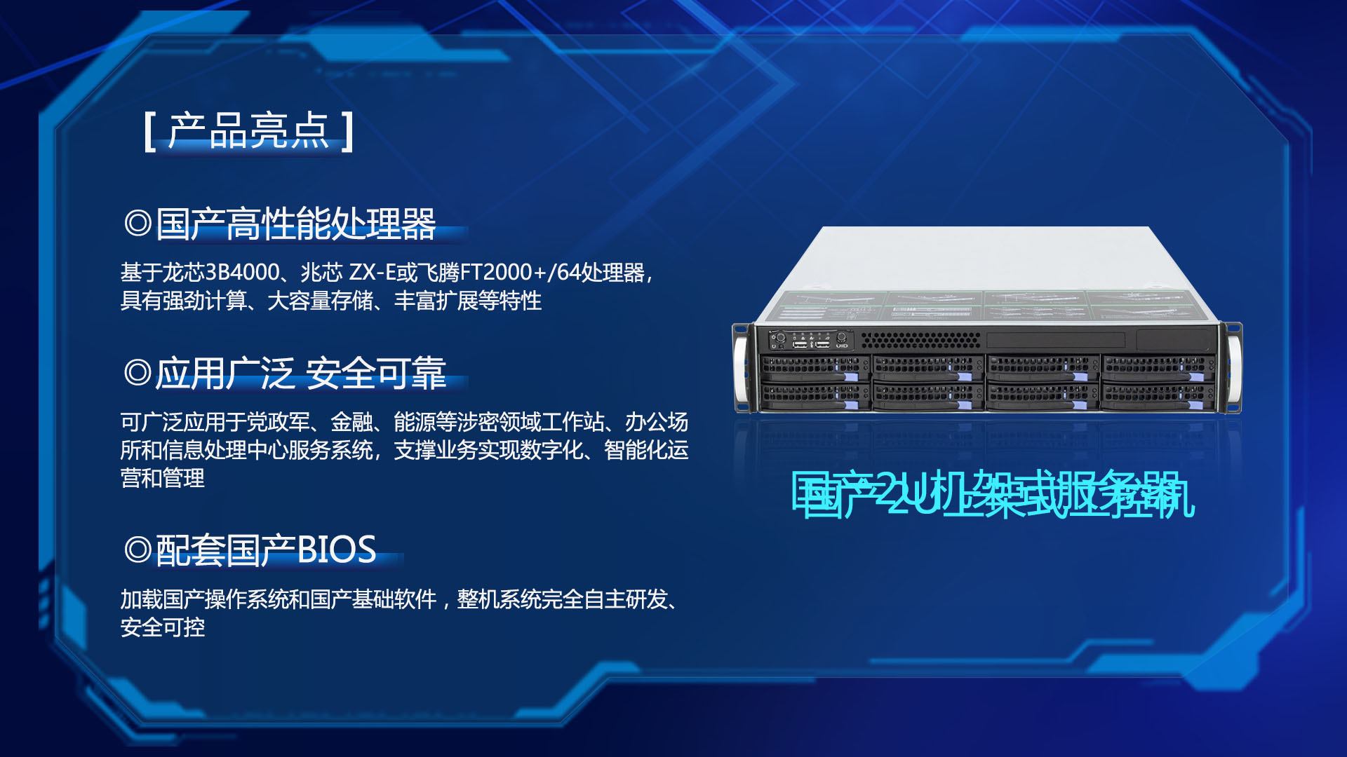 研恒(特控)國產(chǎn)2U機架式服務(wù)器基于龍芯3B4000、兆芯 ZX-E或飛騰FT2000+/64處理器,具有強勁計算、大容量存儲、豐富擴展等特性,配套國產(chǎn)BIOS, 加載國產(chǎn)操作系統(tǒng)和國產(chǎn)基礎(chǔ)軟件,整機系統(tǒng)完全自主研發(fā)、安全可控??蓮V泛應(yīng)用于黨政軍、金融、能源等涉密領(lǐng)域工作站、辦公場所和信息處理中心服務(wù)系統(tǒng),支撐業(yè)務(wù)實現(xiàn)數(shù)字化、智能化運營和管理。