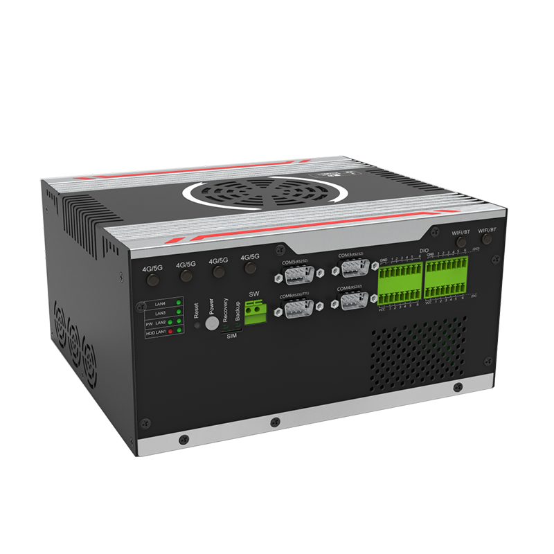 與豎向等多種放置的自然對(duì)流散熱,機(jī)箱可抗接觸式6KV強(qiáng)電磁干擾,DC12V-24V寬壓輸入接口豐富:4*LAN(Intel),6*COM,24*GPIO(12*GPI,12*GPO,帶隔離)10*USB,1*VGA,1*HDMI,1*遠(yuǎn)