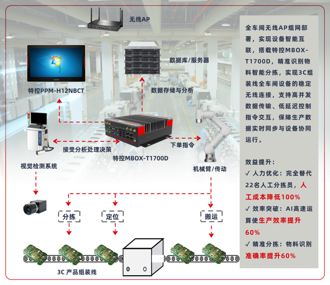 在日均處理百萬(wàn)件包裹的智能倉(cāng)庫(kù),特控邊緣計(jì)算設(shè)備與工業(yè)平板構(gòu)建起 “數(shù)字中樞”。MBOX-T1700D邊緣計(jì)算控制器化身 “智慧大腦”,通過(guò)毫秒級(jí)數(shù)據(jù)處理能力,實(shí)時(shí)分析包裹重量、尺寸與目的地信息,動(dòng)態(tài)規(guī)劃最優(yōu)分揀路徑。