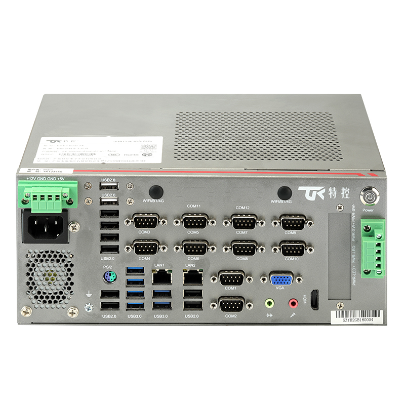 接口豐富 : 2*LAN, 10*COM, 20*USB, 1*PS/2, 1*遠(yuǎn) 程 開 關(guān) , 1*4PIN鳳 凰 端 子 供 電 , 1*VGA, 1*HDMI, 1*4PIN 遠(yuǎn)程開關(guān)1*SIM槽 , 1*LINE OUT, 1*MIC, 2*2.5寸 硬 盤 位 , 1*M.2( 2230, PCIE+USB2信 號(hào) , 支 持 1*4PIN 鳳凰端子供電(+12V/+5V)WiFi/BT/4G),1*PCIE X16