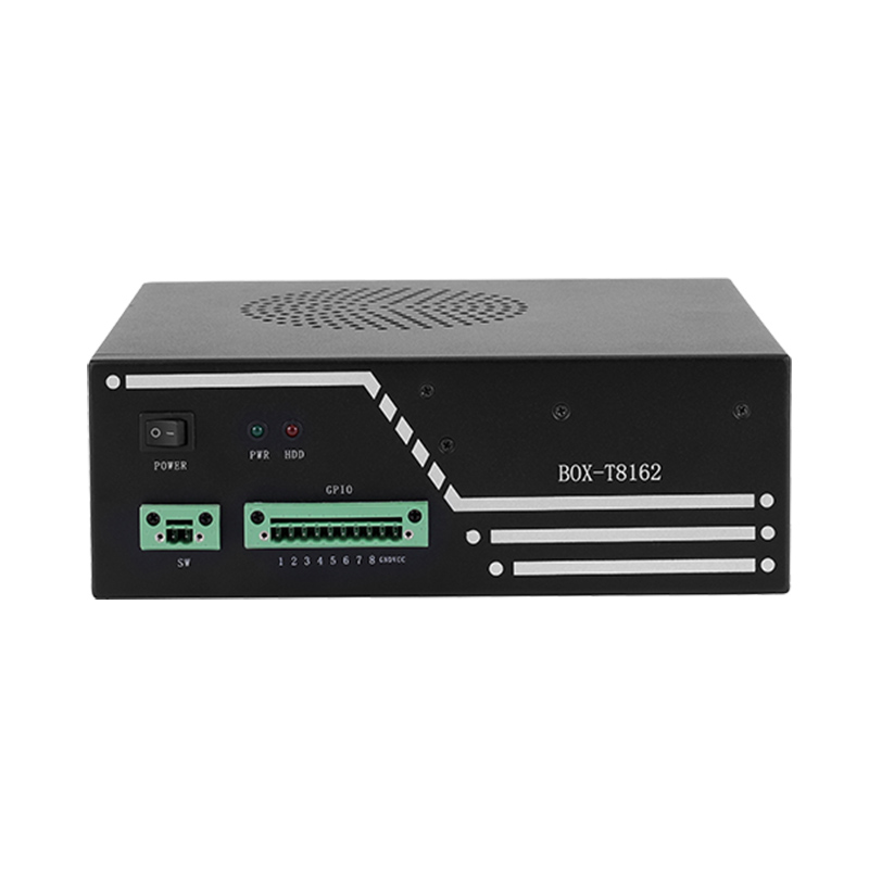 外觀設(shè)計 : 噴砂黑色外殼,工藝精細(xì),科技時尚高性能 : 支持4/6/7/8/9代Intel LGA1150/1151接口全系列處理器穩(wěn)定可靠 : 純工業(yè)設(shè)計,優(yōu)良的散熱結(jié)構(gòu),機(jī)箱內(nèi)置1*6015高速散熱風(fēng)扇,機(jī)箱可抗接觸式6KV強(qiáng)電磁干擾;AC100-240V輸入或者DC12V輸入(默認(rèn)AC100-240V輸入)接口豐富 : 2* Realtek LAN, 6*COM,10*USB, 8*GPIO, 1*遠(yuǎn)程開關(guān),VGA+HDMI,支持同步和異步,支持1*Msata ,1*2.5寸硬盤位,1*MINI PCIE支持 WIFI/4G(二選一),1*PCIEX16(可支持MINI 顯卡,長度180CM以內(nèi))或2*PCI(可二選一)
