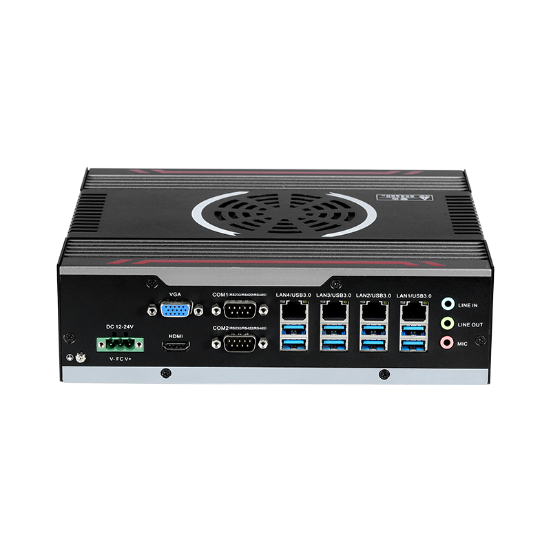 外觀時(shí)尚 : 鋁合金一體成型,結(jié)構(gòu)緊湊,MiNi小巧,工藝精細(xì),科技時(shí)尚高性能 : 支持65W及以下6/7/8/9 代1151 Intel Core i7/i5/i3 系列處理器穩(wěn)定可靠 : 純工業(yè)設(shè)計(jì),強(qiáng)勁解熱熱管與純銅一體化的優(yōu)良散熱結(jié)構(gòu),全密封鋁合金箱體,大面積鋁鰭散熱,可實(shí)現(xiàn)橫向與豎向等多種放置的自然對流散熱,機(jī)箱可抗接觸式6KV強(qiáng)電磁干擾,DC12V-24V寬壓輸入接口豐富 :4*LAN(Intel),6*COM,24*GPIO(12*GPI,12*GPO,帶隔離),7*USB3.0+1*USB2.0,1*VGA,1*HDMI,1*遠(yuǎn)程開關(guān),1*一鍵還原,1*一鍵備份,1*SIM槽,1*LINE IN,1*LINE OUT,1*MIC,1*2.5寸硬盤位,1*M.2(KEY-M,2280,PCIEx4 NVME與SATA自適應(yīng)),1*M.2(KEY-B,3042/3052,PCIE+USB3.0支持4G/5G),1*MINI PCIE(全高,PCIE+USB2.0信號,支持WiFi/BT)